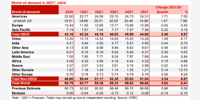 OPEC trong báo cáo thị trường tháng 10 (MOMR) cắt giảm triển vọng nhu cầu dầu thô thế giới năm 2021 từ 5,96 triệu bpd xuống còn 5,82 triệu bpd OPEC trong báo cáo thị trường tháng 10 (MOM..