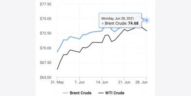 Giá dầu đã tăng liên tiếp trong 5 tuần qua. Giá dầu ngày 28/6 tăng lên mức cao nhất kể từ tháng 10/2018 do kỳ vọng nhu cầu sẽ vượt nguồn cung. Giá dầu Brent giao tháng 8/2021 tăng 22..