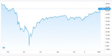 Giá Brent (tháng 3/2021) trong các phiên giao dịch từ đầu năm 2021 đến ngày 13/1 biến động trong biên độ 50,6 - 57,38 USD/thùng, tại thời điểm 00:00 MSK giao dịch quanh mức 56,0 USD/thùng (-..