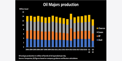 Theo tính toán của Reuters sản lượng dầu và khí đốt từ một số công ty dầu mỏ hàng đầu thế giới có thể giảm hơn 12% trong quý 2/2020 xuống mức thấp nhất trong 17 năm. Việc cắt giảm sản lượng đư..