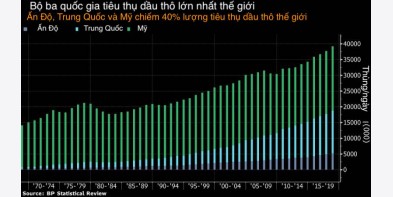 Nhu cầu dầu thô của Ấn Độ giảm khoảng 3,1 triệu thùng/ngày, theo số lượng của Bloomberg. Con số này tương đương với 1/3 sản lượng dầu thô mà tổng thống Mỹ Donald Trump đề xuất OPEC và các nước đồn..