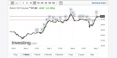 Những ngày đầu tiên của tháng 9, giá dầu giảm mất mốc 60USD/thùng. Nhưng từ ngày 4/9 đến nay, giá dầu liên tục tăng ăn theo những thông tin tích cực từ nền kinh tế Mỹ và thế gi..