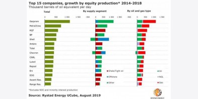 Gã khổng lồ Gazprom của Nga đã chứng kiến sự tăng trưởng sản xuất cao nhất trong 5 năm qua, theo sau là các công ty khai thác khí đá phiến ở Mỹ và Trung Quốc, trong khi BP thống ..