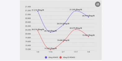 Dữ liệu từ thị trường Singapore cho thấy, giá xăng RON 92 - xăng nền để pha chế xăng E5 và xăng RON 95 - trung bình 15 ngày qua giảm nhẹ so với kỳ tính giá ngày 17/7. Cụ thể, giá xăng RON 92 tr..