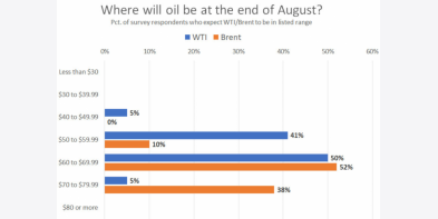 Phần lớn 22 chuyên gia dầu khí được CNBC khảo sát trong tuần này đều dự báo WTI sẽ giao dịch trong phạm vig từ 50 đến 70 đô la một thùng vào cuối tháng 8, và hầu hết các nh&..