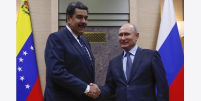 Nga giúp chính quyền Maduro trụ vững trước các lệnh trừng phạt của Mỹ bằng cách cung cấp xăng và vận chuyển dầu thô. Tổng thống Nga Putin (phải) và Tổng thống Venezuela Nicolas Maduro tại Nga n..