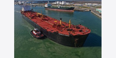 Cơ quan Năng lượng Quốc tế (IEA) dự đoán đến năm 2024 Mỹ sẽ vượt qua Nga và áp sát Saudi Arabia trong danh sách các nước xuất khẩu dầu mỏ lớn nhất thế giới. Tàu chở dầu tại cảng thuộc tiểu bang Texa..