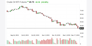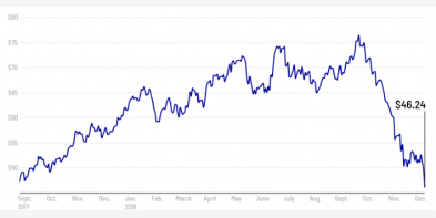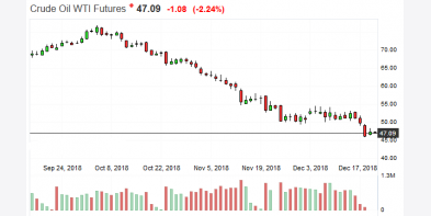 Giá dầu WTI tại Mỹ đã giảm 7% vào ngày 18.12 xuống mức 46,24 USD/thùng. Đó là mức đóng cửa thấp nhất kể từ tháng 8.2017. Kinh tế suy thoái Thị trường con gấu của giá dầu..