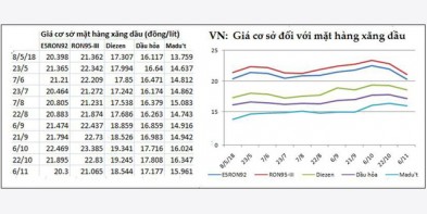 Theo dữ liệu trên Website Bộ Công Thương, giá xăng tại thị trường thế giới đang quay đầu giảm so với kì điều hành ngày 6/11. Vậy nên, giá xăng trong kì điều hành chiều nay có t..