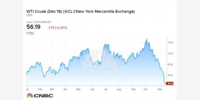Giá dầu ngọt nhẹ giao dịch tại thị trường New York giảm tới 7% trong phiên ngày 13/11 do những lo ngại về tình trạng dư cung kéo dài và nhu cầu “vàng đen” toàn cầu đang suy yếu..