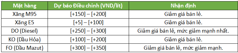 IV. Dự Báo Giá Cơ Sở (GCS) và Bán lẻ Việt Nam