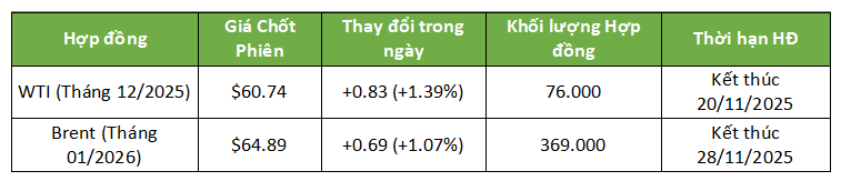 Tồn kho Dầu thô Mỹ Tăng: Dữ liệu API (thứ Ba) cho thấy tồn kho dầu thô tăng 4.45 triệu thùng trong tuần kết thúc ngày 14/11. Điều này tạo áp lực giảm lên giá dầu, phản ánh nguồn cung dồi dào.