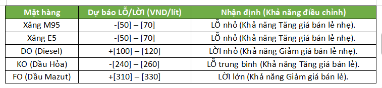 Lưu ý: Quỹ BOG (Petrolimex +3080 tỷ, Pvoil -138 tỷ) không thay đổi, sẽ không có trích/xả quỹ. Việc điều chỉnh giá sẽ chủ yếu dựa trên GCS LỖ/LỜI.)