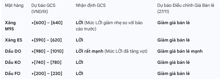 Ngày Điều chỉnh Giá Bán Lẻ Dự kiến: Thứ Năm, 27/11/2025.
