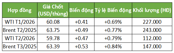 Cả hai hợp đồng đều đóng cửa ở mức cao nhất trong hai tuần (kể từ 18/11).