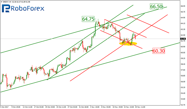 Từ quan điểm kỹ thuật, xu hướng ngắn hạn của Brent là giảm, nhưng xu hướng dài hơn vẫn là tăng. Sự suy giảm trong ngắn hạn có thể di chuyển về hướng 60.30, bởi vì khu vực này là mức hỗ trợ cho cả xu hướng ngắn hạn và dài hạn. Nếu giá bật lên từ mức này, nó có thể bắt đầu xung tăng mới với các mục tiêu gần mức cao hiện tại ở 64.75 và đường biên trên của kênh giá tăng dài hạn tại 66.50.