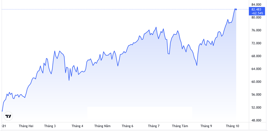 Giá dầu Brent giao sau tại thị trường London tăng 1,3 USD/thùng, tương đương tăng 1,6%, đạt 82,56 USD/thùng. Trong phiên, có lúc giá dầu Brent đạt đỉnh 3 năm ở 83,13 USD/thùng.