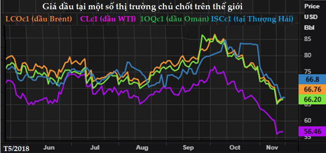 Giá dầu thế giới đã tăng mạnh trong tháng 9 và đầu tháng 10/2018, nhưng sau đó giảm nhanh, mất hơn 20 USD/thùng chủ trong vài tuần qua. Giá dầu vừa trải qua chuỗi 6 tuần giảm liên tiếp, trong đó phiên 13/11/2018 giảm mạnh tới 7% chỉ trong một ngày.