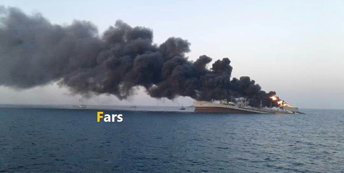 Trước vụ cháy tại nhà máy lọc dầu không lâu, con tàu lớn nhất của Hải quân Iran, IRIS Kharg, đã chìm ở Vịnh Oman sau khi ngọn lửa bùng phát trên tàu trong suốt 20 giờ.