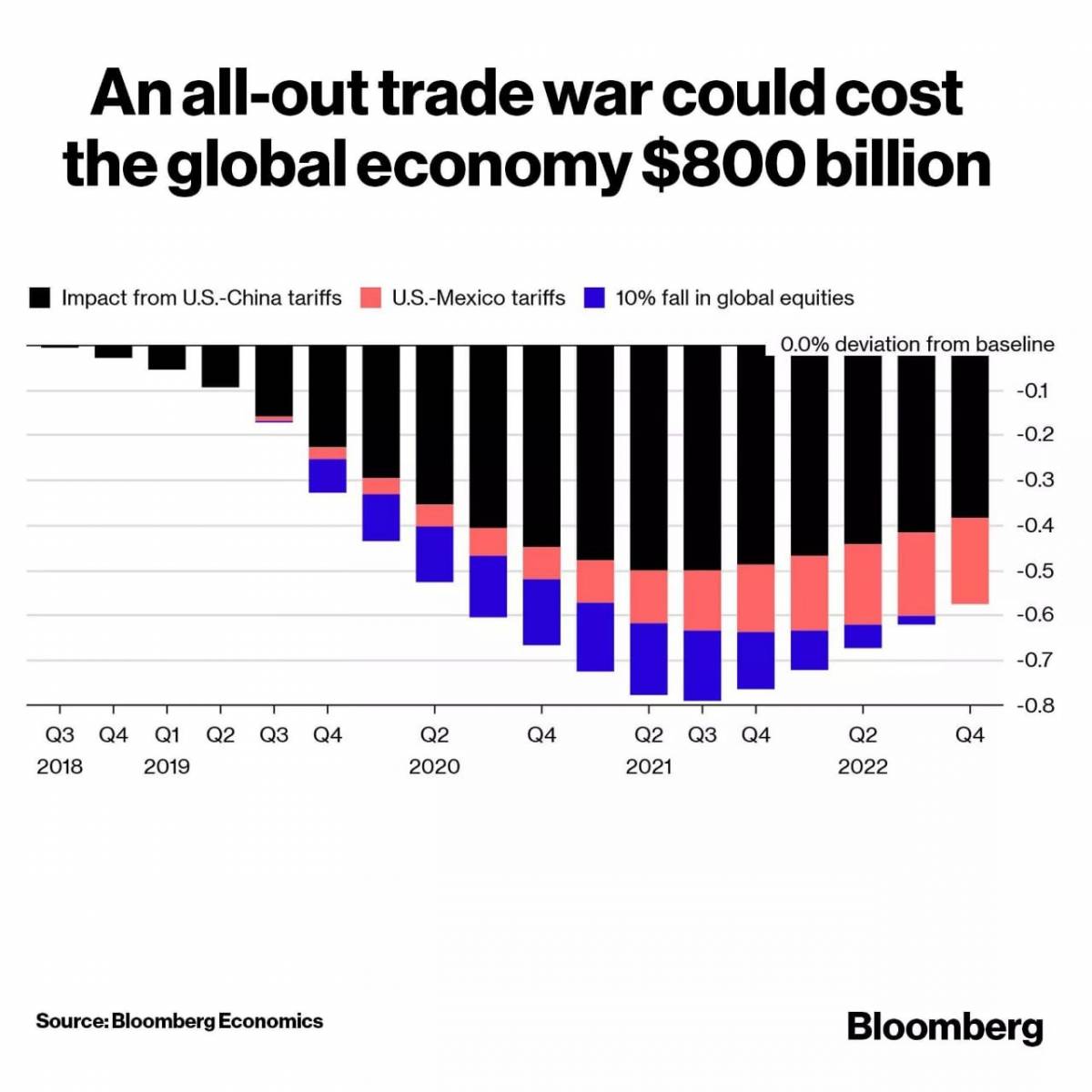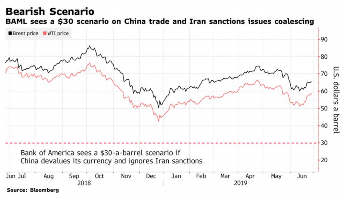 Kể từ khi Trump phát động một cuộc chiến thương mại toàn diện chống lại Trung Quốc, những lo ngại về tăng trưởng kinh tế toàn cầu đã có thể cảm nhận được. Các dự báo u ám mới nhất đến từ Bank of America Merill-Lynch. Trong một cuộc phỏng vấn Francisco Blanch, người đứng đầu bộ phận hàng hóa của BofA, nói rằng cơ hội Trump áp thuế cho 300 tỷ đô la thuế quan vẫn còn cao.